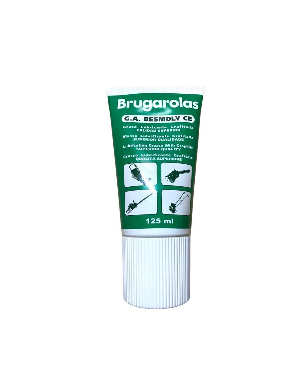 Grasa lubricante grafitada de Brugarolas en tubo de 125 ml, con punta aplicadora para engrase preciso. Ideal para herramientas de jardín.