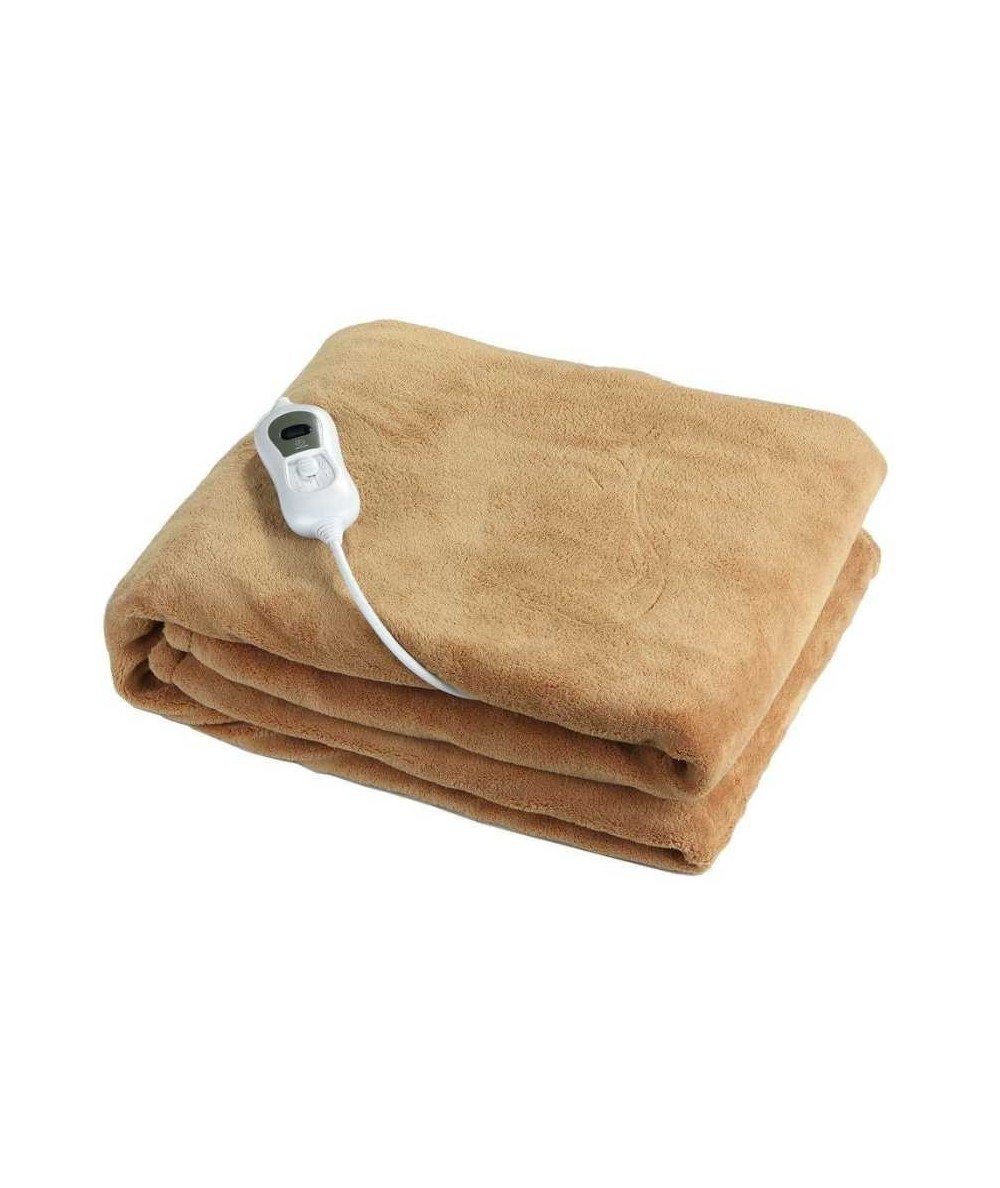 Manta eléctrica térmica de 120W con tres niveles de temperatura, apagado automático, protección contra sobrecalentamiento y suave funda de microfibra lavable.