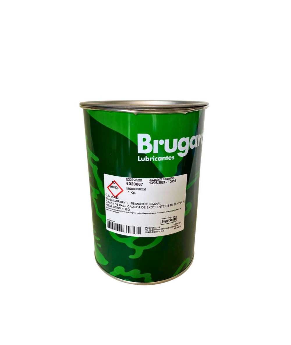 Grasa cálcica AGUILA A-420 de Brugarolas, de alta adherencia, resistente al agua y con excelentes propiedades anticorrosivas y antioxidantes. Disponible en 1 kg y 5 kg
