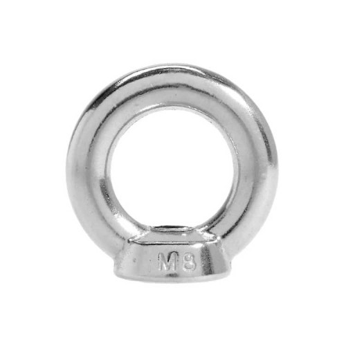 Cáncamo con base alargada de acero inoxidable AISI 316. Acabado pulido brillante.