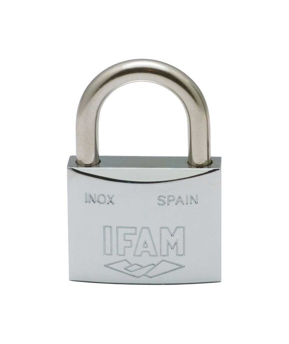 El candado Inox IFAM de 30mm ofrece máxima seguridad y resistencia a la oxidación en ambientes marinos y húmedos. Su sistema de llaves iguales permite abrir varios candados con una sola llave, aportando comodidad y practicidad. Fabricado en latón macizo con arco de acero inoxidable AISI 316. Disponible con arco normal o arco largo.