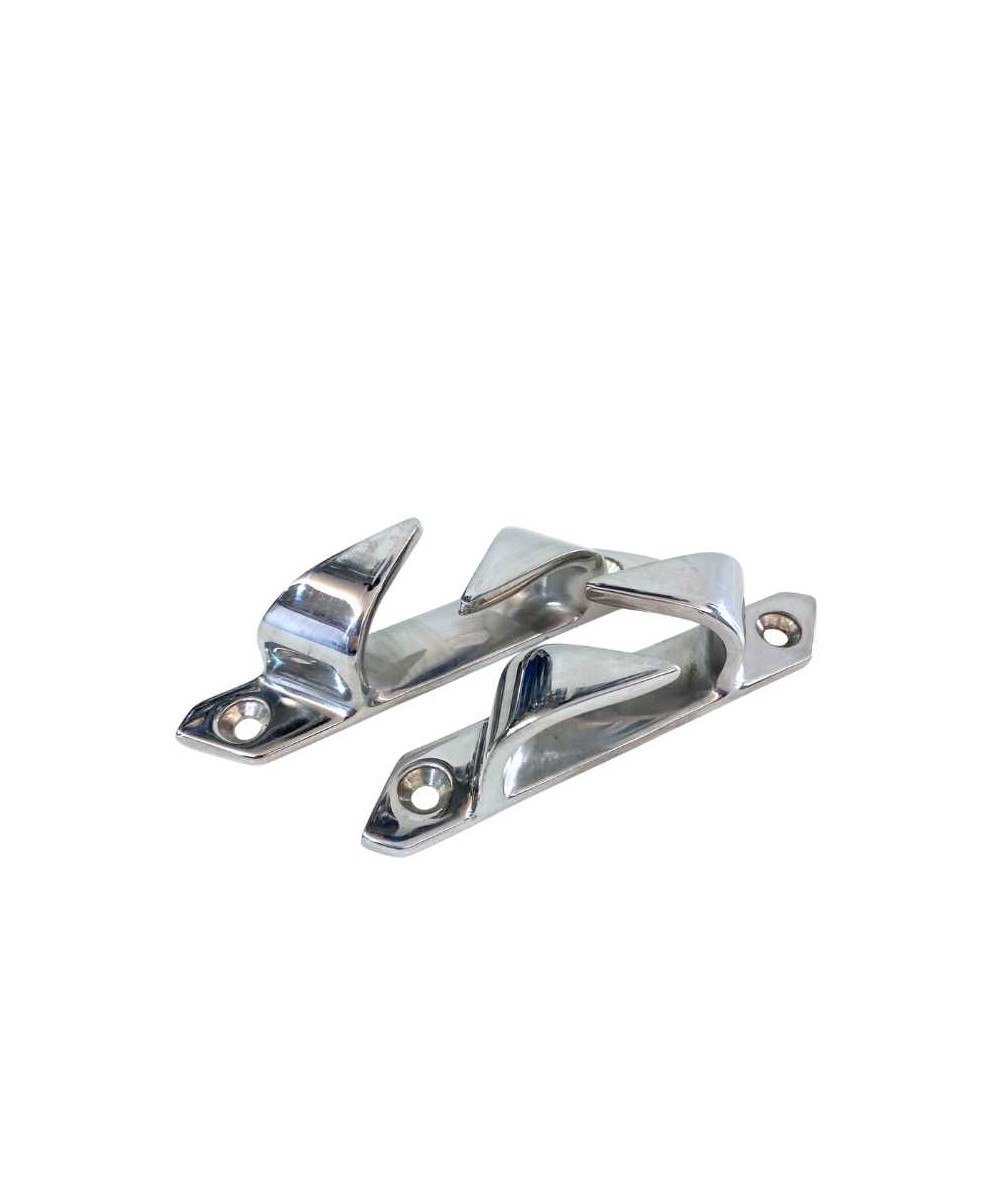 Juego de guiacabos oblicuos fabricados en acero inoxidable AISI 316, con acabado pulido brillante para máxima durabilidad en ambiente marino. Se instalan en cubierta o costado para guiar los cabos sin rozaduras ni desgaste.