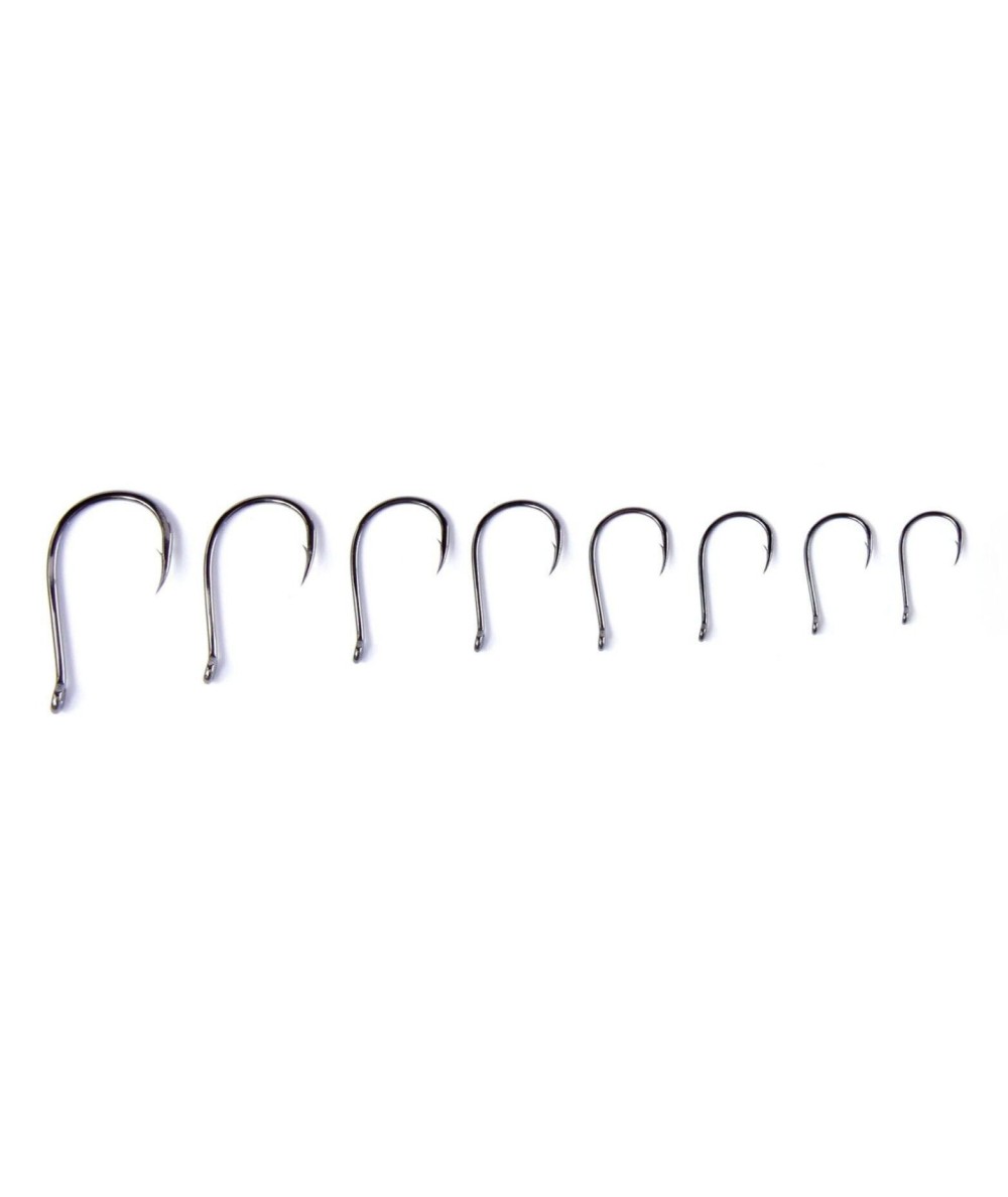 Anzuelos ASARI Chinu Flatted Shank en acabado níquel negro. Forjados, extra fuertes y fabricados en Japón. Presentación en bolsa de 25 unidades.
