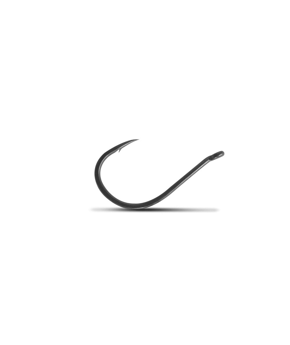 Anzuelos ASARI Chinu Flatted Shank en acabado níquel negro. Forjados, extra fuertes y fabricados en Japón. Presentación en bolsa de 25 unidades.
