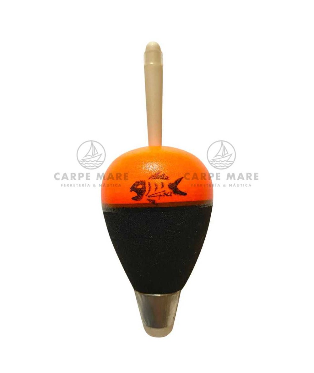 El flotador artesanal Gaci modelo P es un flotador de pesca artesanal, de forma de pera, lastrado y color naranja flúor.