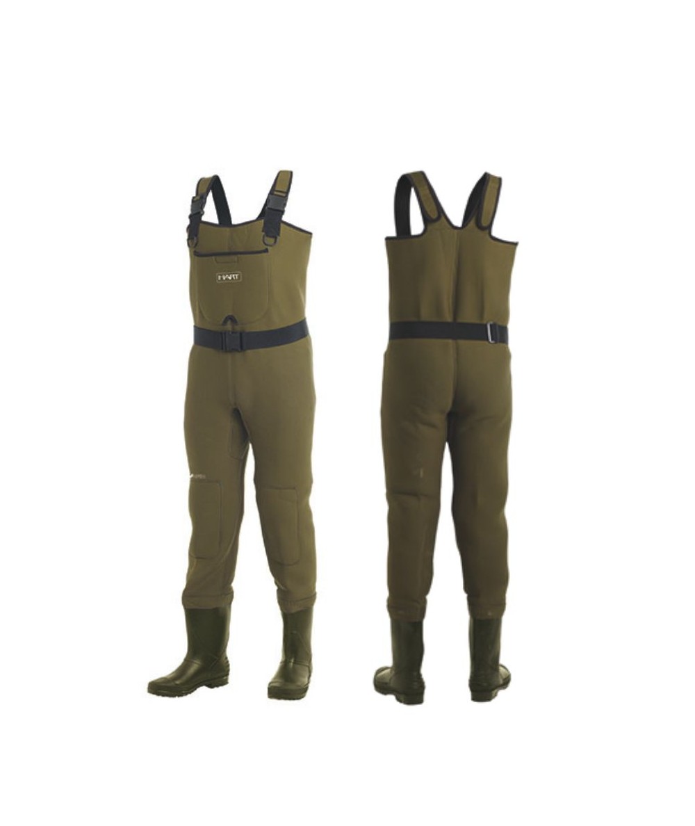 Vadeador Hart Hydrik en neopreno de 4,5 mm con bota de PVC y suela de goma. Incorpora tirantes regulables, rodilleras preformadas, bolsillos de pecho y cinturón de nylon.