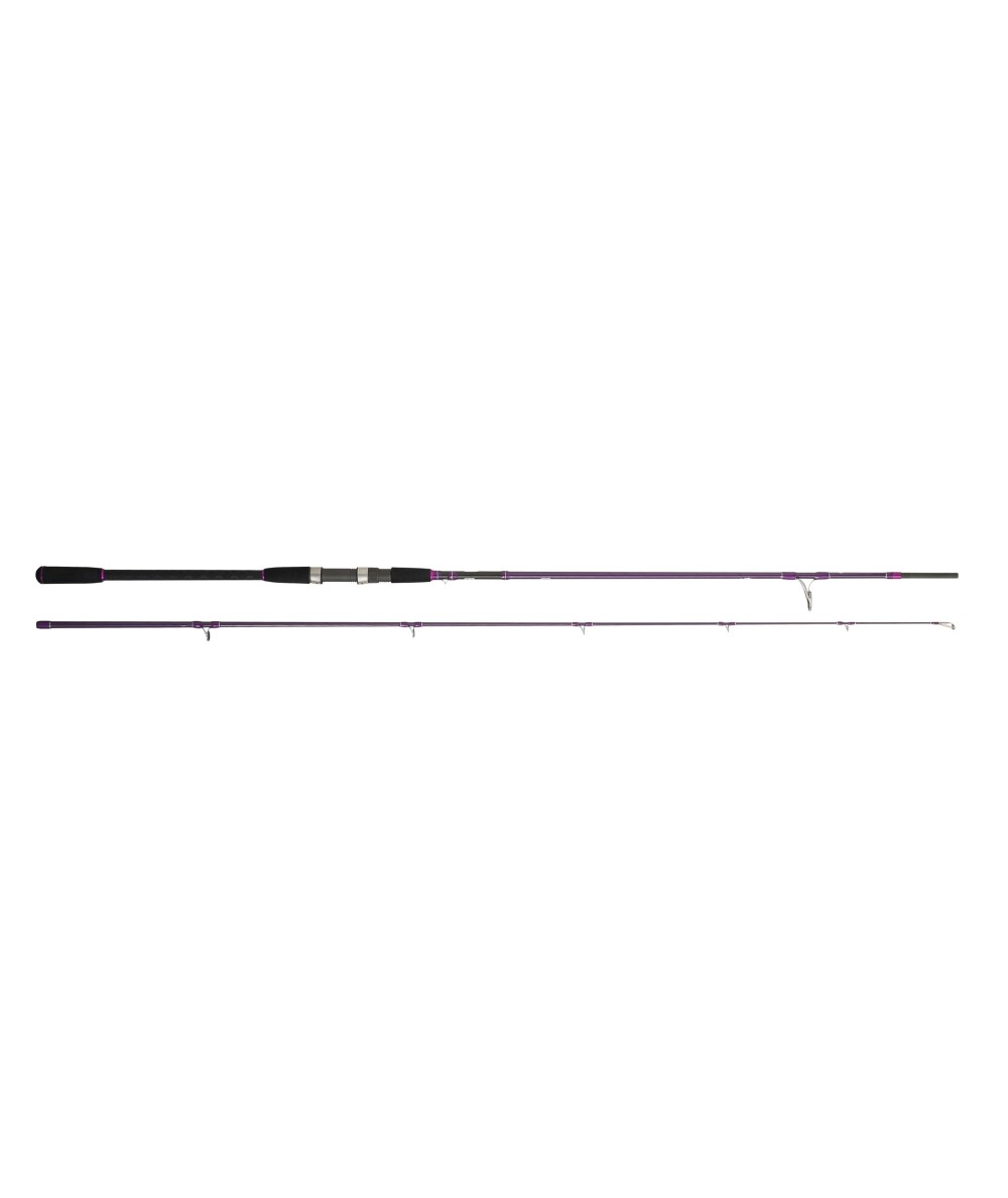 La Caña Cinnetic EXPLORER BLACK PURPLE Sea Bass es una caña de spinning fabricada en carbono 24T con refuerzo XBR, equipada con anillas Fuji MNAD Alconite y portacarretes Fuji DPS. Disponible en 270MH y 330MH.