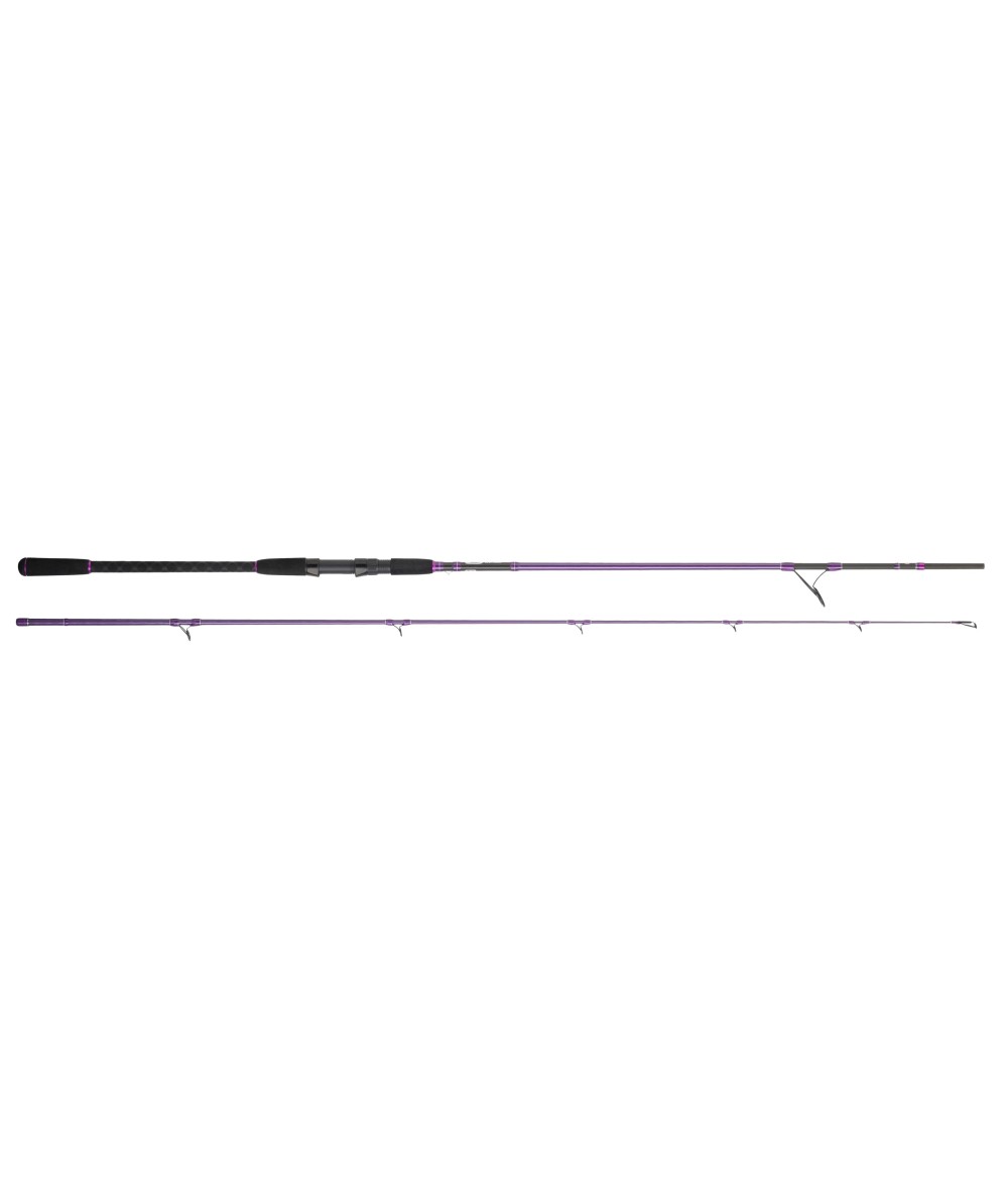 La Caña Cinnetic EXPLORER BLACK PURPLE Light Game 300M es una caña de spinning de acción media, fabricada en carbono 24T y equipada con anillas Fuji MNAD Alconite y portacarretes Fuji DPS.