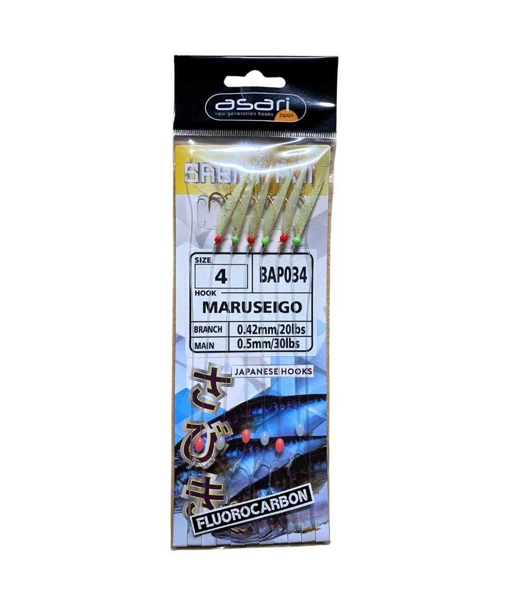 Las Plumas Asari Pro Sabiki Multicolor nº4 están equipadas con 5 anzuelos, línea principal de 0.40 mm y ramales de 0.35 mm. Un montaje sabiki resistente y eficaz para la pesca de pelágicos.