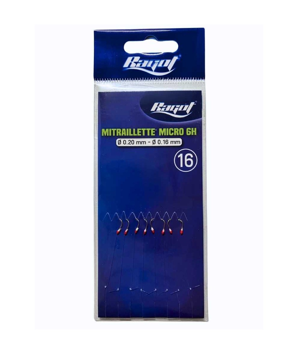Metralleta Ragot Original con 5 anzuelos inoxidables 2/0 y plumas. Línea de 0,60 mm y montaje reforzado. Producto estrella desde 1954.