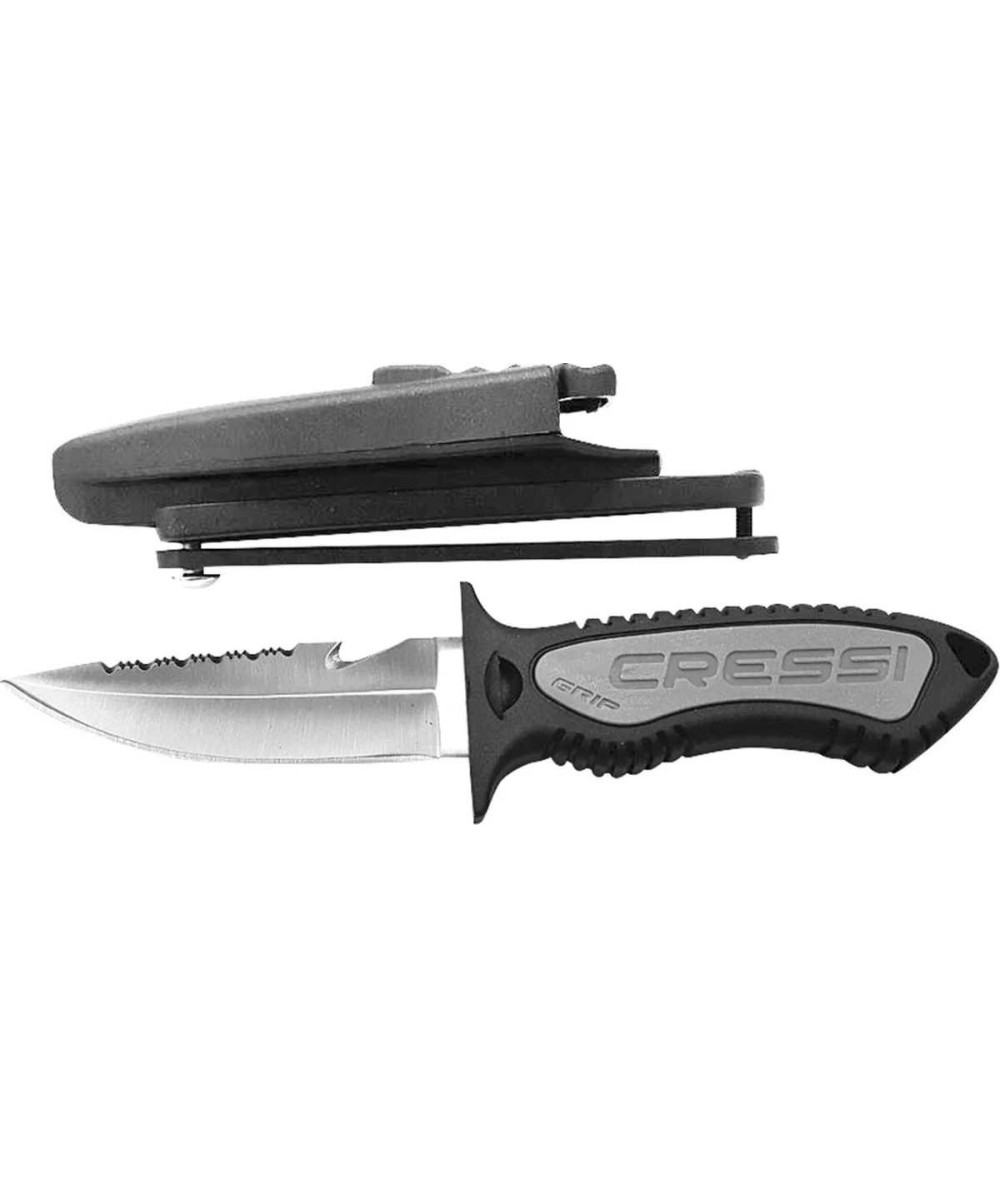 El Cuchillo Cressi Vigo es un cuchillo mediano, ergonómico y plano, con hoja de acero inoxidable 401 templado, sistema de fijación segura y agarre antideslizante.