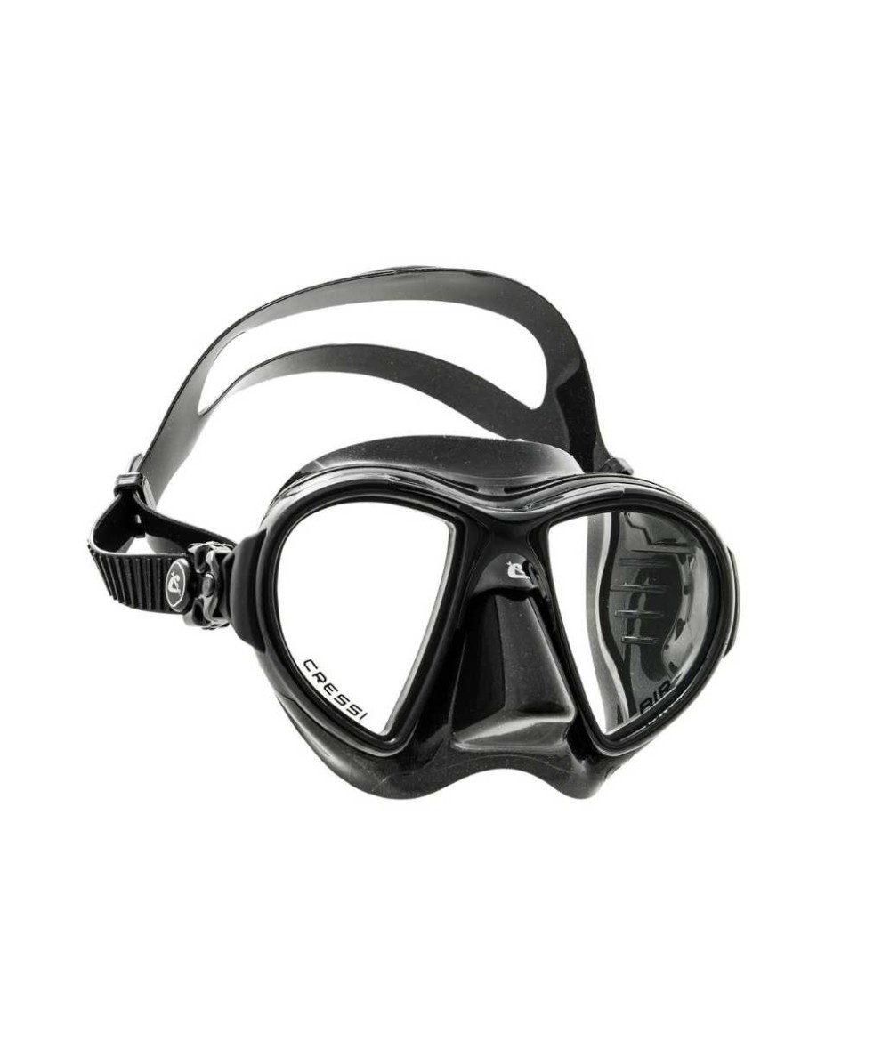 La máscara Cressi Matrix Dark es una máscara de buceo con estructura compacta, volumen interno reducido y cristales inclinados, pensada para ofrecer un amplio campo de visión.