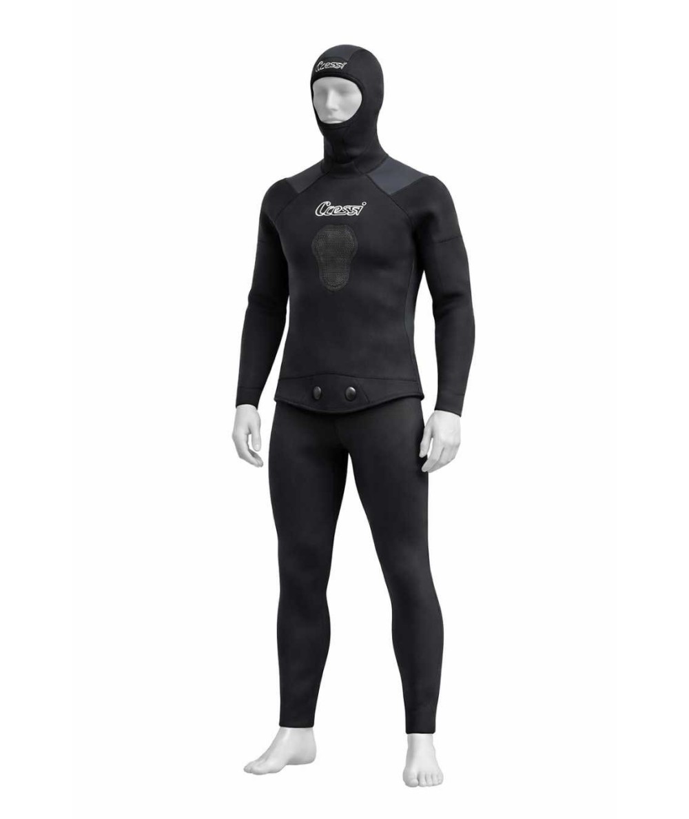 El Traje Cressi Fisterra LC 9mm es ideal para buceadores profesionales en aguas frías o inmersiones prolongadas. Fabricado en neopreno LC ultraelástico y de baja compresión, ofrece gran resistencia, estanqueidad y comodidad. Incluye chaqueta de 9 mm y pantalón con peto de 8 mm, interior microporoso y rodilleras reforzadas en Supratex©.