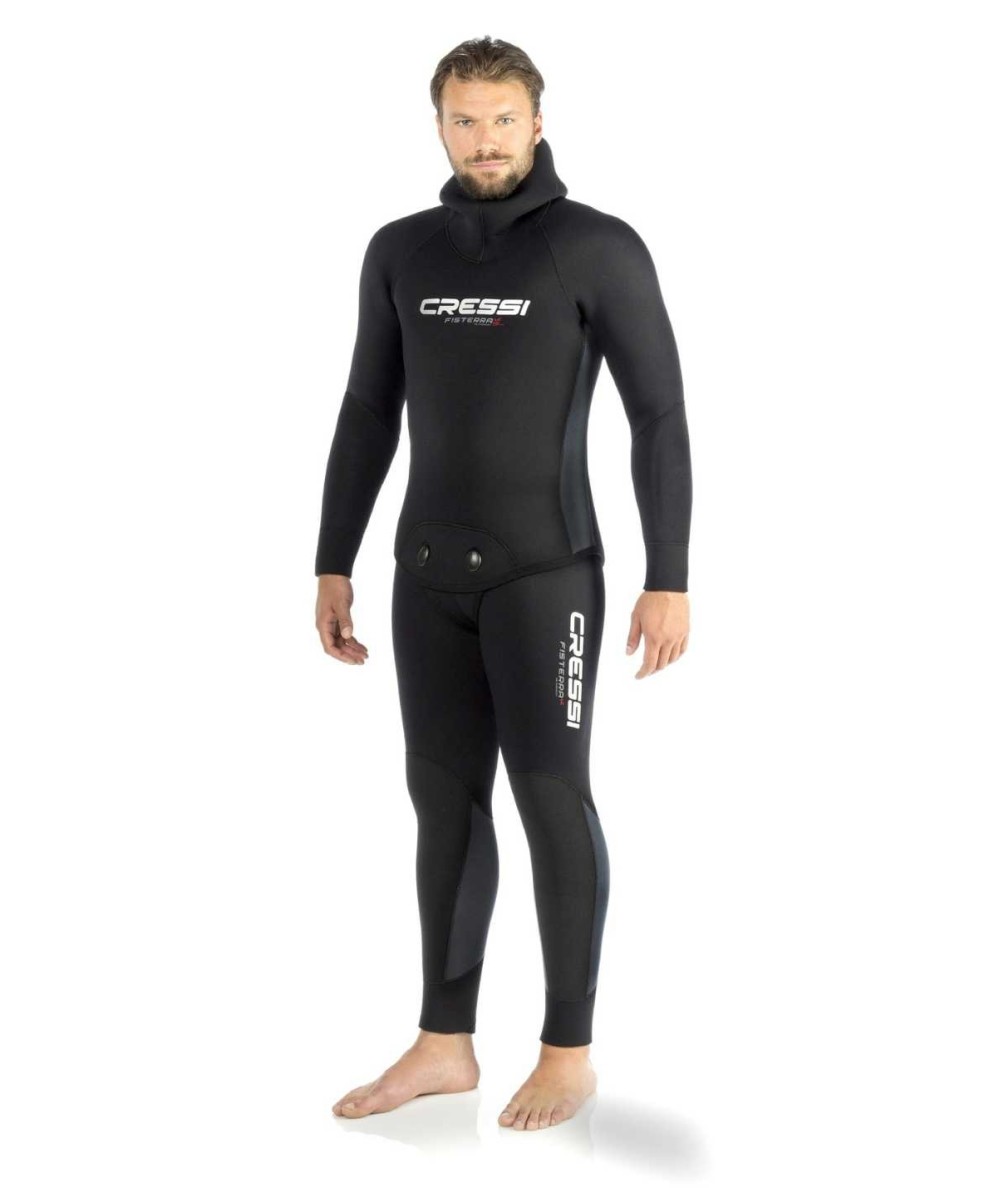 El Traje Cressi Fisterra LC 8/7 mm es ideal para buceadores en aguas frías. Fabricado en neopreno LC de baja compresión, proporciona un excelente aislamiento térmico, comodidad y durabilidad. Incluye chaqueta de 8 mm y pantalón con peto de 7 mm, con interior forrado y refuerzos en rodillas.
